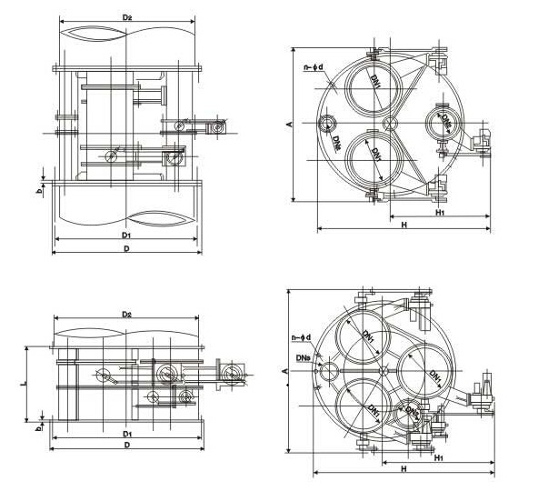 The TYFZ type gas pressure regulating valve group is composed of ZAJW-1 type automatic regulating butterfly valve and constant pipe. Generally, one ZAJW-1 butterfly valve is used for automatic control by DDZ type electric unit combination instrument. The other two (or three) ZAJW-1 butterfly valves are made up of electric actuators which are controlled by manual operators on the instrument panel to adjust the flow and pressure of the system. . TYFZ type gas pressure regulating valve group is suitable for blast furnace system and other systems which need to keep stable production through flow and pressure regulation. There is no directional requirement when the valve group is installed on the horizontal pipe, but the normal through pipe should be placed below the valve group to ensure the discharge of condensate when the system temperature drops. When installing on the vertical pipe, the position of the electric actuator should be considered.