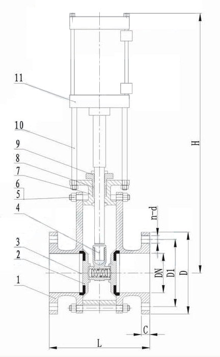 當(dāng)氣缸通過閥桿帶動(dòng)閘板下行時(shí),閘板與閥體密封面吻合,將通道切斷,即為關(guān)閉;反之則為開啟。